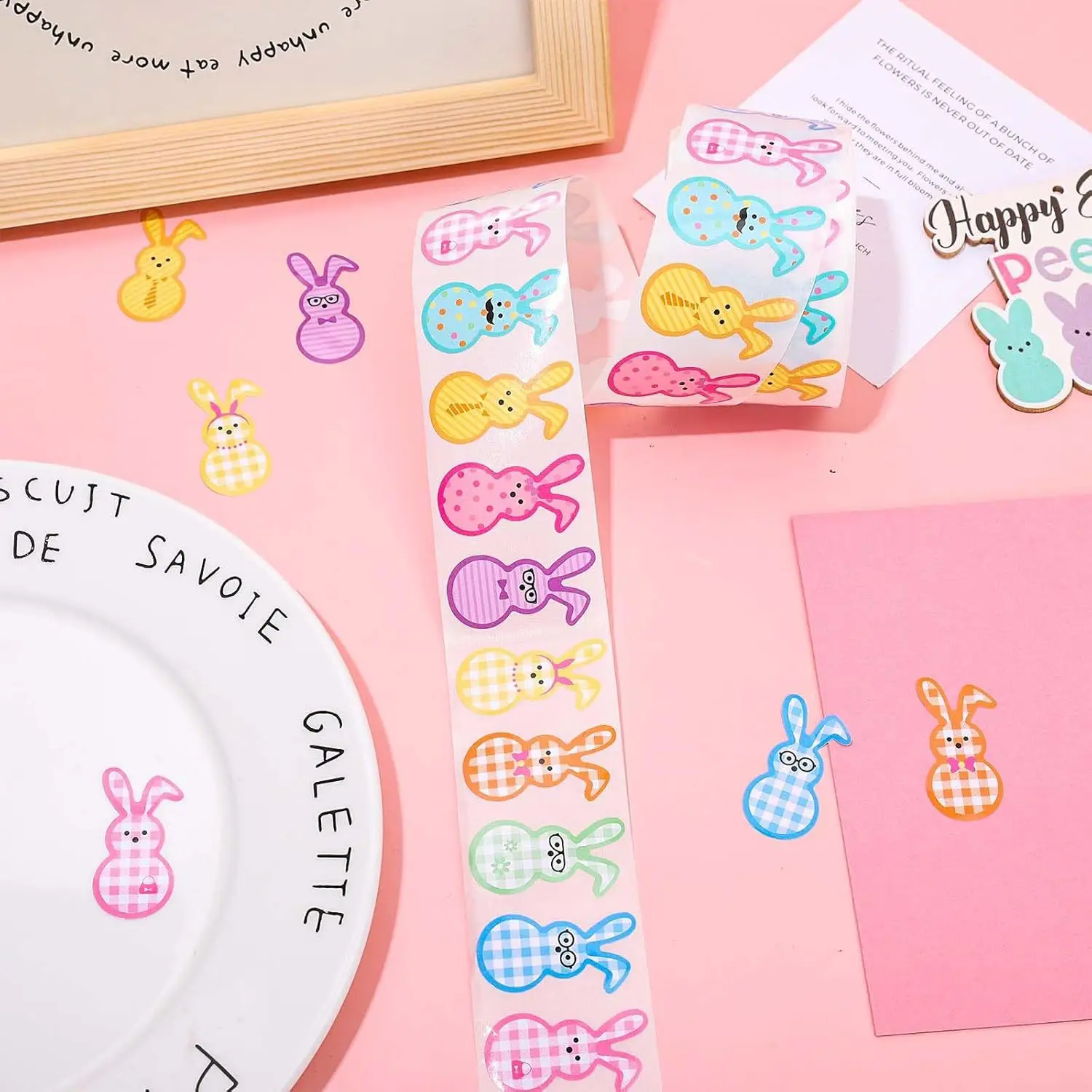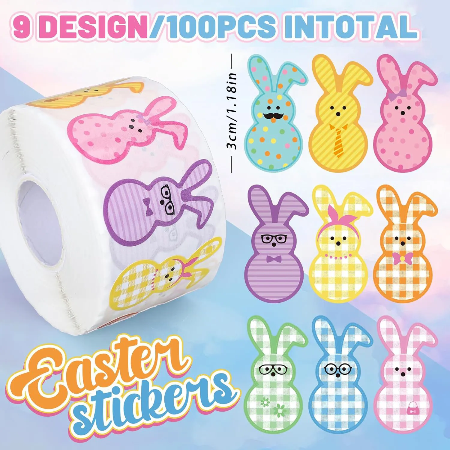 Celebrate spring with this adorable Easter Bunny sticker roll. Available in 100 to 500 pieces with 9 cute designs, including plaids, dots, and fun patterns. Perfect for sealing envelopes, decorating planners, scrapbooks, or craft projects. Great for kids, teachers, and party organizers. Easy to peel and stick on paper, cards, or gifts. Durable and long-lasting, keeping stickers bright and charming. Compact and convenient for storage or on-the-go use. Adds a playful, festive touch to Easter activities and spring crafts. Helps encourage creativity and adds joy to stationery projects. Upgrade your craft collection with these cute, colorful, and versatile Easter Bunny stickers today.