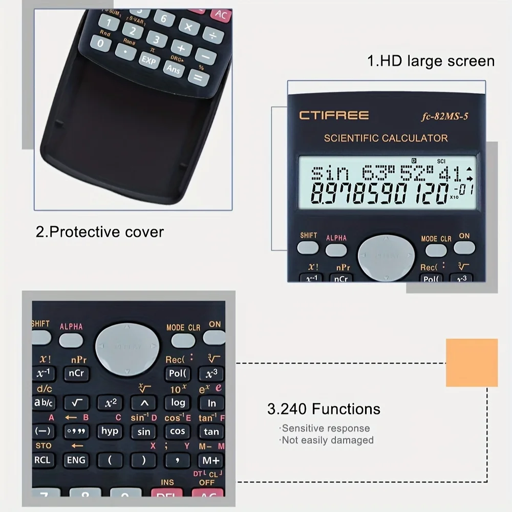 This exam-ready scientific calculator is designed to support students through math, science, and engineering courses with confidence. It features a clear large display that makes reading numbers and formulas easy during long study sessions or exams. With multifunctional capabilities, it handles complex calculations, trigonometry, algebra, and statistics effortlessly. The intuitive button layout ensures quick input and smooth operation for beginners and advanced users alike. Its portable size fits easily into backpacks, pencil cases, or desk drawers. Built with durable materials, it is made to withstand daily classroom and exam use. The calculator is ideal for middle school, high school, and college students. It supports efficient problem-solving both at home and in test environments. This reliable calculator is a must-have study companion for academic success.