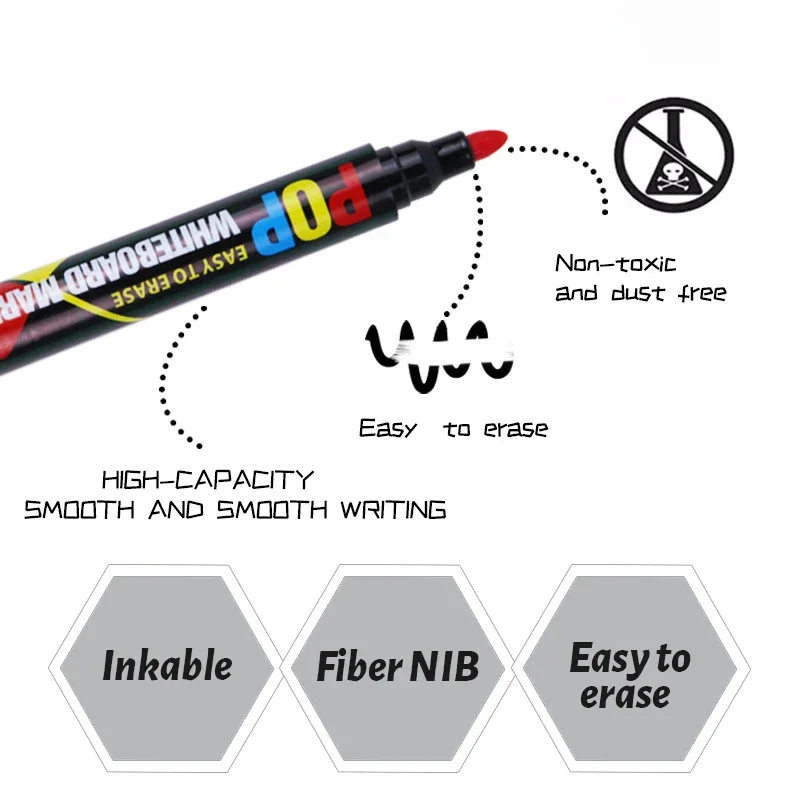 Bring vibrant color and functionality to your workspace with this 8- or 12-color POP whiteboard marker set. Perfect for office, classroom, or home use. Each marker is erasable, refillable, and non-toxic for safe everyday use. High-capacity ink ensures long-lasting performance without frequent refills. Ideal for writing on whiteboards, presentations, lessons, or brainstorming sessions. Smooth, consistent ink flow delivers clear and professional results. Compact and lightweight design makes them easy to store and use. Suitable for students, teachers, office workers, and creative projects. Bright colors enhance visibility and engagement during lessons or meetings. Upgrade your stationery collection with this versatile and reliable whiteboard marker set today.