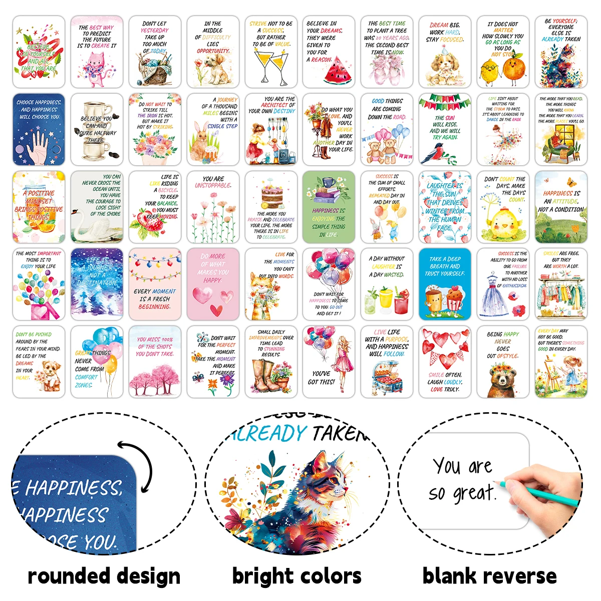 Inspire positivity and mindfulness with this set of 50 positive encouragement cards. Each card features uplifting messages and affirmation texts designed for women, men, and families. Perfect for daily motivation, spiritual healing, or personal reflection. Compact and portable, ideal for keeping on your desk, in your bag, or giving as gifts. Great for birthdays, special occasions, or as a thoughtful gesture to loved ones. Helps promote self-confidence, positivity, and emotional well-being. Durable, high-quality cards ensure long-lasting use for daily inspiration. Ideal for journaling, meditation, or personal growth exercises. Supports motivation, encouragement, and a positive mindset every day. Upgrade your stationery and self-care collection with these empowering and versatile affirmation cards today.